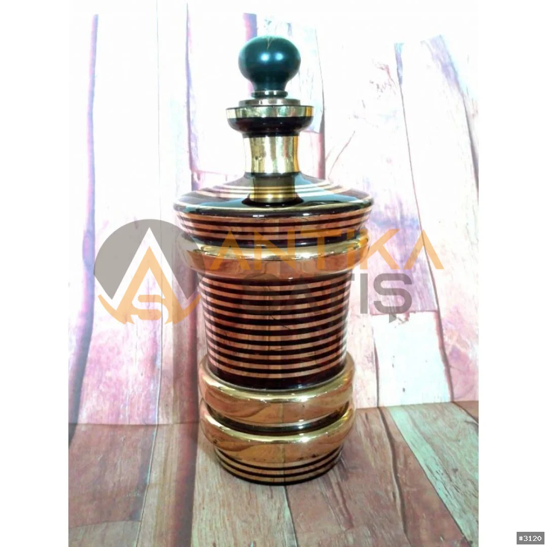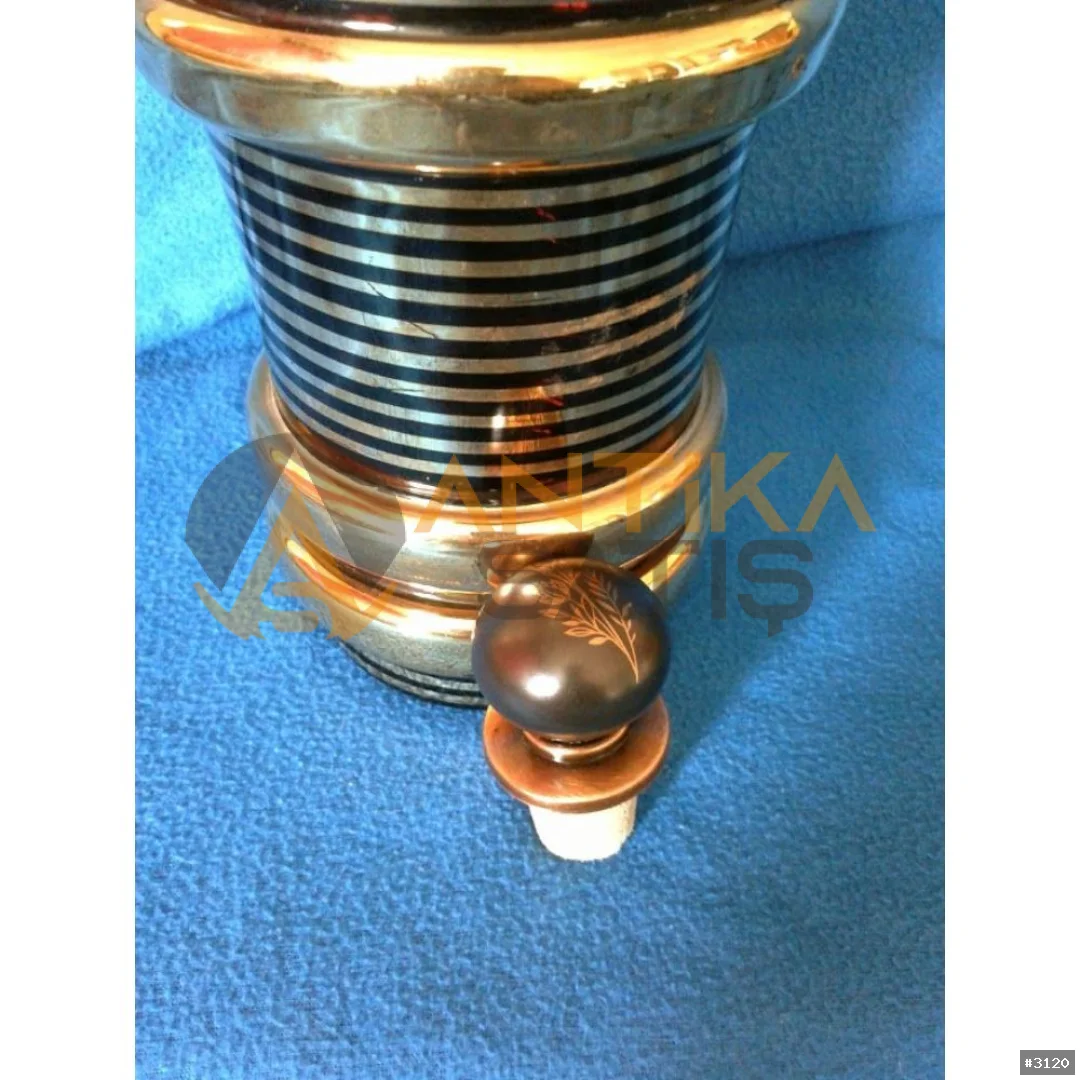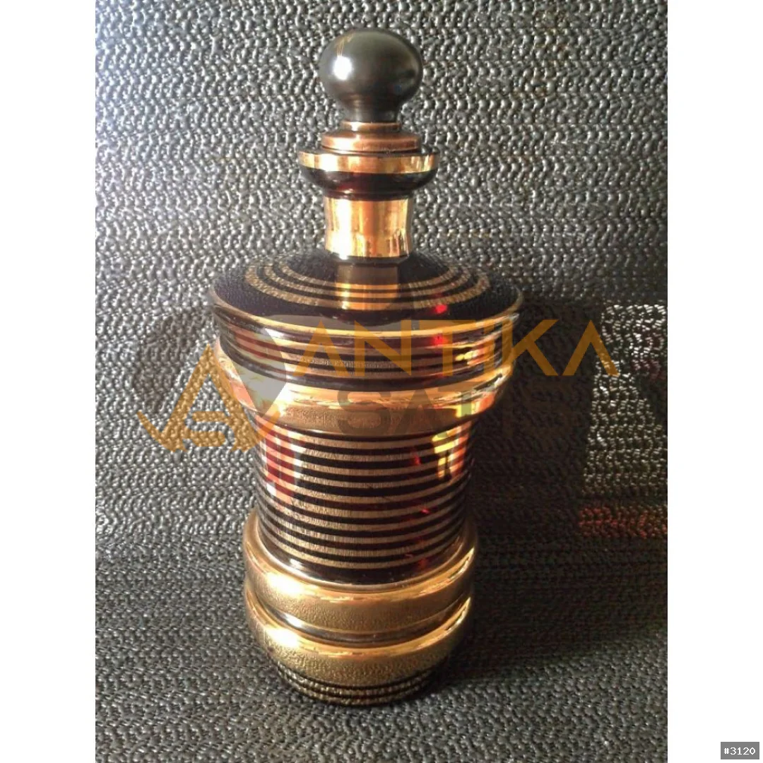 Kehribar rengi cam, üzeri altın varaklı Karaf.